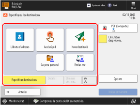 Al tauler de control, premeu [Bústia de fax/I-fax] de la pantalla [Inici]. Pantalla [Inici]