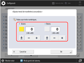 La pantalla [Ajustar tensió transfer. secundària] es mostra a la pantalla.