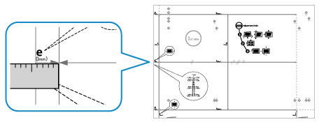Si us falta part d'"f", mesureu la longitud de "f" més propera a la vora inferior i compareu-la amb el valor prescrit corresponent (450,0 mm, 550,0 mm o 650,0 mm).