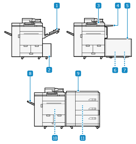 Staple Finisher-AG, Booklet Finisher-AG, Unitat perforadora i Booklet Trimmer-G