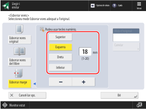 * Podeu esborrar les ombres d'un llibre només quan llegiu les mides que es mostren a la pantalla de selecció de la mida de l'original.