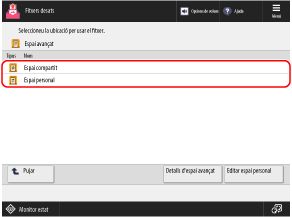 Podeu utilitzar el tauler de control de l'equip per dur a terme les operacions següents per als fitxers desats a l'Espai avançat: