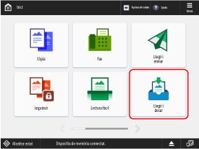 Quan es mostra una pantalla de drecera amb funcions disponibles després d'inserir un dispositiu de memòria USB a l'equip, podeu prémer [Llegir i desar al dispositiu de memòria] per desar immediatament les dades de [Llegir i desar].