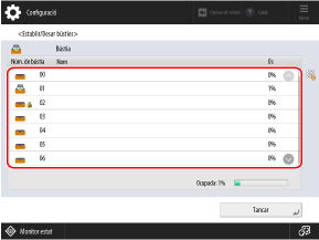 Les opcions [Temps per a autoeliminació de fitxers] i [Imprimir en desar des del controlador d'impressora] es poden configurar per a totes les bústies alhora.