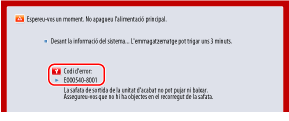 Abans de contactar amb el servei tècnic, reinicieu l'equip per veure si el missatge d'error desapareix. Si el missatge d'error torna a aparèixer, poseu-vos en contacte amb el servei tècnic i informeu dels símptomes.