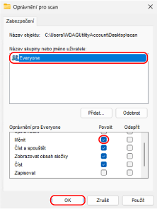 V části [Oprávnění] zaškrtněte políčko [Povolit] u možnosti [Změnit].
