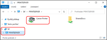 Zobrazení sdílené tiskárny na tiskovém serveru