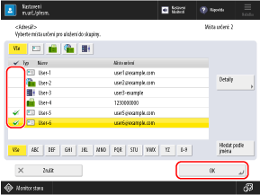 Zaškrtněte políčka míst určení, které mají být zaregistrovány do skupiny, a klikněte na tlačítko [OK].