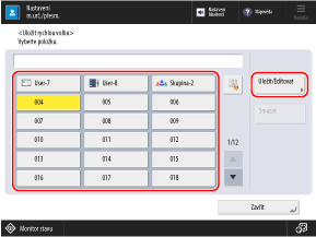 Vyberte tlačítko pod které chcete místo určení uložit, a stiskněte [Uložit/Editovat].