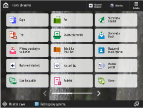 Můžete změnit uspořádání tlačítek funkcí a tlačítek pro nastavení na obrazovce [Hlavní obrazovka] a změnit pozadí na některý z přednastavených obrázků.