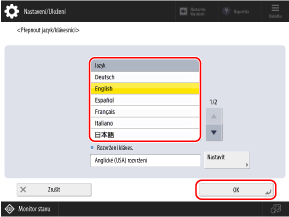 Vyberte jazyk zobrazení a stiskněte [OK].