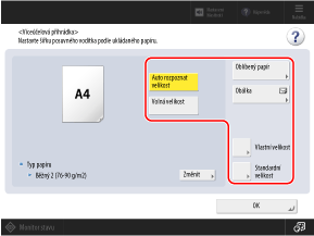 Pokud je vložen papír velikosti, která není automaticky rozpoznána, nebo je i po opětovném vložení papíru rozpoznána jiná velikost, stiskněte [Standardní velikost] a vyberte velikost vloženého papíru.