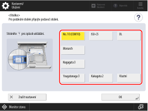 Když jsou vloženy obálky vlastní velikosti, vyberte [Vlastní].