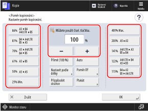 Můžete nastavit poměr pro zvětšení nebo zmenšení kopií.