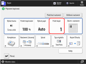 Na ovládacím panelu stiskněte tlačítko [Kopie] na obrazovce [Hlavní obrazovka].