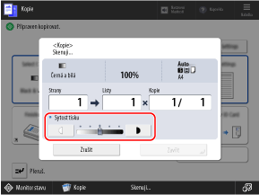Zobrazí se obrazovka kopírování.