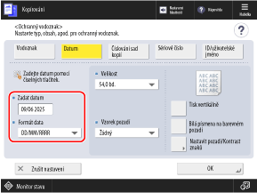 Ve výchozím nastavení se zadá datum nastavené na přístroji. Pokud chcete přidat jiné datum, zadejte jej pomocí číselných kláves.
