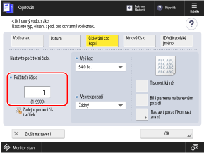 Můžete vložit čísla sad kopií (k označení pořadí sad kopií). Lze je použít jako kontrolní čísla pro každou sadu kopií.