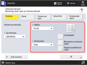 *Úpravy provedené v [Nastavit pozadí/Kontrast znaků] na obrazovce [Ochranný vodoznak] se vrátí na výchozí nastavení, když stisknete [