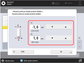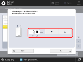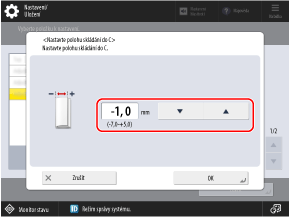 Nastavením kladné hodnoty (+) posunete polohu směrem vlevo od papíru, když je rozložený, nebo nastavením záporné hodnoty (-) posunete polohu směrem vpravo.
