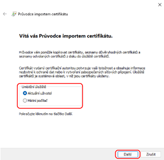 Znovu se zobrazí obrazovka [Průvodce importem certifikátů].