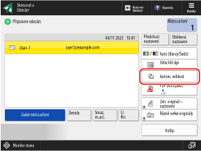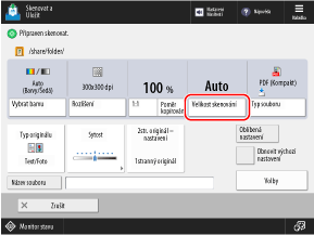 Stiskněte [Auto] a vyberte objem výstupních dat (velikost papíru naskenovaných dat).