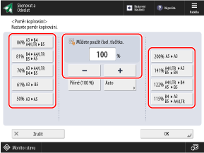 * Pokud je nastavená možnost [Dlouhý originál], lze originál umístit pouze do podavače. Poměr je navíc pevně stanoven na 1:1 (100 %).