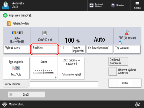 *Rozlišení nelze nastavit při ukládání naskenovaných dat do poštovní schránky. (Rozlišení je pevně nastaveno na [600x600 dpi].)