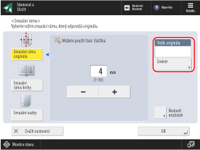 Stiskněte [Změnit], vyberte velikost originálu a stiskněte [OK].