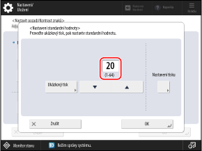 Vytiskne se ukázkový výtisk a znovu se zobrazí obrazovka [Nastavení stand. hodnoty].