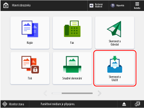 *Můžete také naskenovat dokument z [Přístup k uloženým souborům] na obrazovce [Hlavní obrazovka] a uložit jej na paměťové zařízení USB. Použití [Přístup k uloženým souborům] k uložení dat je užitečné, pokud chcete soubor okamžitě na přístroji vytisknout.