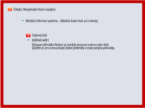 V závislosti na chybě se může zobrazit zpráva s výzvou, abyste nevypínali napájení přístroje, protože přístroj po výskytu chyby ukládá systémové informace. V takovém případě nevypínejte přístroj, dokud se data neuloží.