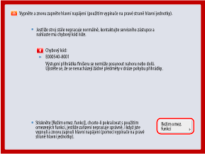 Pokud se na obrazovce objeví [Režim omezených funkcí], můžete jej stisknout a pokračovat v používání přístroje před odstraňováním problémů. Využitelné funkce jsou však omezené.