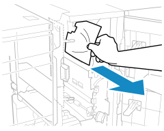Tato část popisuje, jak odstranit zachycený papír uvnitř předního krytu. Podle pokynů na ovládacím panelu zkontrolujte místo zachycení papíru a odstraňte zachycený papír.