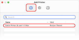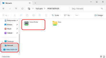 Vælg printserveren fra [Netværk] for at vise den delte printer.