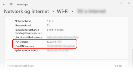 Kontrollér for IP-adressen og DNS-serveren under [Egenskaber].