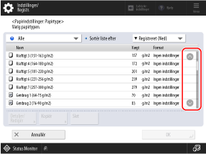 Hvis alle elementer på en liste ikke kan vises i en enkelt visning, kan du trykke på [