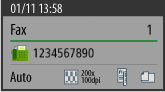 Viser antallet af destinationer*1, destination, originalstørrelse, opløsning, 2-sidet og filformatindstillinger.