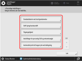 Du kan ændre indstillingerne (personlige indstillinger) relateret til skærmvisningen og betjeningen for hver login-bruger. Disse indstillinger er kun gyldige, når den bruger, der tilpassede dem, er logget på, og påvirker ikke indstillingerne for andre brugere.