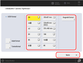 Vælg papirformatet, og tryk på [Næste].