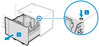 Løft ikke op i løfteren inden i papirmagasinerne, mens strømmen er slået TIL, eftersom dette kan forårsage fejlfunktioner eller skade på maskinen. Er du nødt til at løfte op i løfteren, eksempelvis hvis du taber genstande, skal du slå strømmen FRA med papirmagasinerne åbne.
