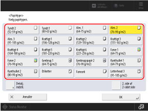 Tryk på [Detalj. indstil.], og vælg papirtypen fra den viste liste.