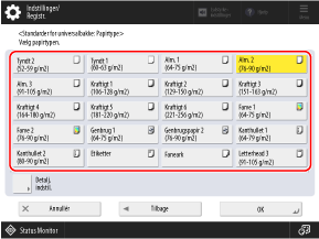 Tryk på [Detalj. indstil.], og vælg papirtypen fra den viste liste.