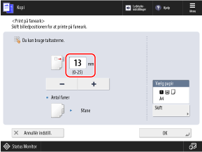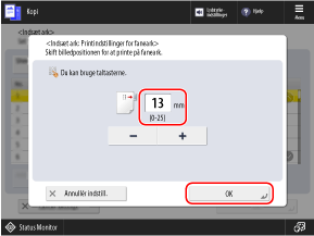 Indstillingen af printposition er ikke nødvendig, hvis du ikke kopierer på fanedelen. Tryk på [OK] uden at konfigurere denne indstilling, og fortsæt til trin