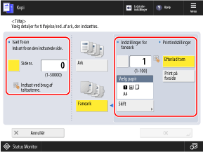 *Når du konfigurerer indstillingerne til at kopiere på fanedelen, kopieres det angivne sidetal for originalen.