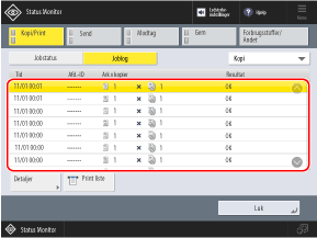 Vælg et job med de detaljerede, du vil kontrollere, og tryk på [Detaljer].
