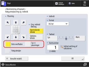 *Du kan ikke vælge [Hele overfladen] og [Tal i 5 placeringer], hvis indstillingerne er konfigureret til at tilføje andre oplysninger til kopisætnumrene.