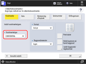 *Du kan også indstille maskinen til at tvangsindlejre vandmærker ved kopiering.