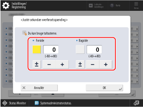 Tryk på knappen [Forside] eller [Bagside] for at vælge den, og indtast derefter værdien.