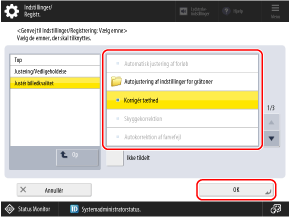Vælg det indstillingselement, der skal registreres som genvej, og tryk på [OK].